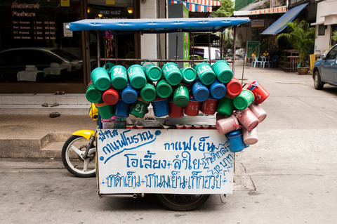 Ein Fotoband zeigt auf humorvolle Weise den Erfindungsgeist in der Alltagskultur Thailands Zwei CD-Rohlinge auf ein Fahrradblech geklemmt: Fertig ist der Ersatz fürs Rücklicht. Was wie eine hintergründige Kunstinstallation als Abgesang auf das Zeitalter der CD anmutet, ist in Wirklichkeit eine Alltagsbeobachtung in Thailand. Genauso wie die Coladose, die im Freien an einer dünnen Schnur baumelt und verhindert, dass der Wind die Tischdecke hinwegträgt. Fotografiert hat diese Motive der Münchner Thomas Kalak aus dem Blickwinkel des staunenden Europäers. So sind Hunderte Dokumente entstanden, die auf humorvolle Weise von Erfindungsgeist und Gebrauchskunst in Thailand erzählen. Kalaks Fotoband „Same same, but different!" macht auf wunderbare Art klar, dass für Thailänder der Zweck der Dinge oft genug nicht in ihnen selbst liegt, sondern im Auge des Betrachters. Lektion eins: Kein Ding ist so kaputt, dass man es nicht noch nutzen könnte. So etwa ein gelber Plastikstuhl, mit Stofffetzen notdürftig zusammengehalten und vorm Zusammenbruch bewahrt - zumindest bis zum nächsten Draufsitzen. Lektion zwei: Es liegt nicht am Objekt, wenn es die Anforderung nicht erfüllt, es liegt an der Perspektive. So gesehen bei Tischen, deren zu kurze Beine auf vier Schemeln platziert werden. Und schließlich die Frage: Wer braucht eine Treppe, wenn doch ein Farbeimer denselben Zweck erfüllt? Nach knapp zehn Jahren Thailand-Erfahrung hält Kalak dem Effekt der Gewöhnung problemlos stand. Immer wieder lenkt er seine Kamera auf neue erfinderische Konstruktionen. Dort, wo Plastiktüten, Einwegflaschen oder Benzinkanister herabhängen, umständlich zusammengeschnürt und verhakt sind, sieht er genau hin. So wird Improvisation zur Kunst und behält gleichzeitig etwas Rätselhaftes, denn manche Objekte halten ihren Zweck im Verborgenen.